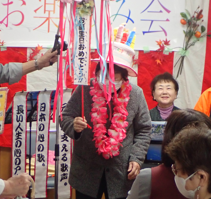 | 11月18日(火) 曇り 町の老人会の「お楽しみ会」で9時から準備。紅白の幕を張り雰囲気を盛り上げる。参加は25名。3割強の参加。歌を中心の余興。多いに盛上がりきっちり1時間で終える。食事会で更に盛上がり終了。反省会を役員で行い。2時にすべてを片付けて散会。地元の芸能はTVで観るのとは違い楽しめる。素人だが場数を踏むとプロ顔負けだ。とにかく出し物が多い。 |