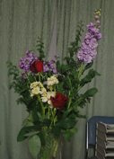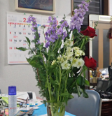 | 2月1日(日) 快晴 だらだらした休日。もう2月。一昨日ゴルフで「1月も終りね。すぐ正月よ!」とメンバーが言っていた。皆笑っていたが、歳とると時間の進みが早いらしい。午後、中央へ2月の空気吸いにカフェに行く。帰りに新装のコンビニへ寄り、許可を得てスタンドの花を貰ってきた。萎れたバラを水折りで再生させ見事な生け花にした。 |