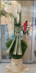 ![]() ペットボトルのキャップで作った保育園のシンボル絵 白黒以外に虹色など10色はある。 |