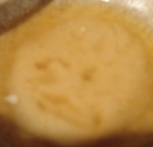 ![]() お通しが顔に見えた。 具を食べた後のスープ。 |