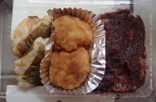 | 12月14日(日) 雨のちくもり 町内の餅つきと即売会。生憎の雨で突く場所はT氏宅の駐車場を借りた。三色(安倍川・きなこ・あんこ)で450gもあり、300円と具だくさんの豚汁100円を販売するので、私の昼食になる。モチは安倍川のみで、あとは明日以降になる。とにかく量が若者向き。 |