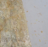 ![]() 金色の繭玉紙(左)と漉き込んだ和紙(右) |