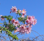 | 11月24日(月) ほぼ快晴 シルクのような薄い雲がかかるも陽射しがまぶしい空の下、施肥の作業を実施。桜やダリアなど花見の為の草木を育てている。皇帝ダリアを初めて見る。高さが4M+はあろう。普通のダリアのイメージとは全く異なる。南米原産で、キダチ(木立ち)ダリアが普通名称らしい。一年でこの高さに育つという。種からでは数年かかるが挿し木だという。これ以外に桜などに施肥した。この苦労が来年に花見で皆さんを楽しませる。 |