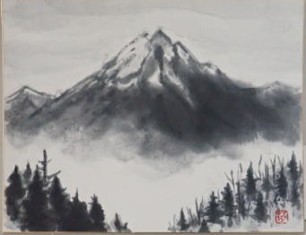 巧いものだ。あっという間に頭の中にある風景を落とし込むように、描き上げる。ぼかしも手馴れている。無論道具もいいものだろう。油絵とは違う日本の風景が浮かび上がってくる。実際に見たことないが、観たいと思わせる。 |