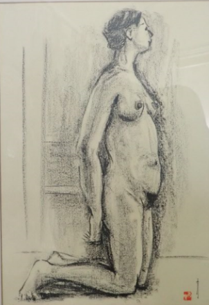 このポーズは結構描いている。5分から10分のクロッキーだが、陰影のつけ方が違う。そもそも手足がきれいだ。胸と腹のバランスがいい。自分では描けてるのにと思っても、終わって眺めると恥ずかしい。 |