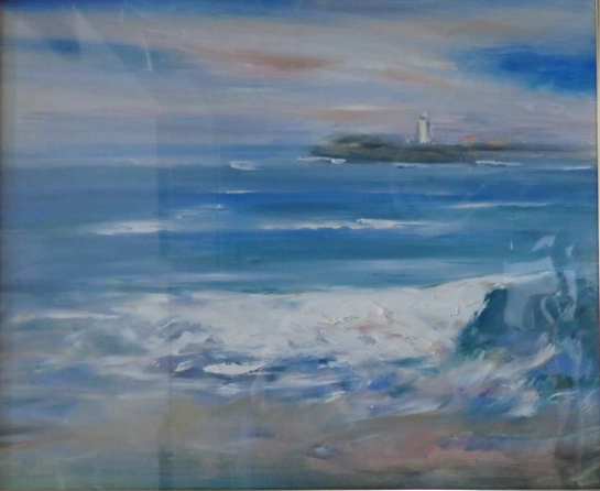 《波と灯台》 8F どこの灯台か知らないが、裸婦と同じ青で女と海に吸い込まれそうな感じが似ていて好きだ。時代を築いた画家ではあるが・・・ |