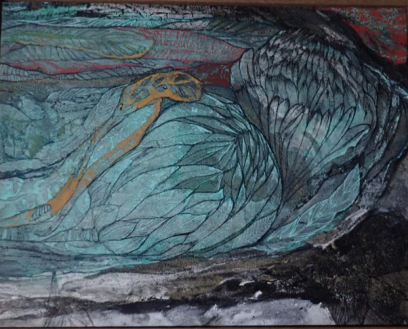 この絵は母のためにある。 平成14(2002)年1月11日。 蓮かもしれない。 この世にない花 天から地から 降り注ぐ光 葉ではない確かに花 花弁が語り掛けてくる まだ眠りについてない 起きろ! 叫ぶ父の声が響く いつか花弁が開くかもしれない 父は黙した 見つめる目が母から離れない 聞こえてくる 視線の先から |
