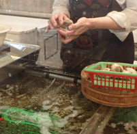 海ホタルの売店のアサリ販売の店員・中華街の混在振り |