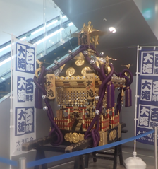 今年は三浦半島の各市町村が神輿を出す。その宣伝を兼ねて中央に展示しているのだろう。大きさは中間だが豪華で映える。多くの人がカメラに収めていた。 |