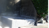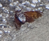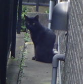 庭の縁石でノラがセミを弄っていた。 |