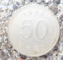 帰宅時、自宅近くでコインを拾った。韓国の50ウオンで、日本円なら5円になる。