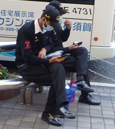 普段着の制服なのですぐ分かり話しかけやすい。一応マスクをしている。日本対応なのかな。 |
