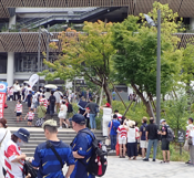 上着に⚓マークを付けた艦船の乗務員が三々五々屯している。市民から話しかけられても笑顔で受け答えしていた。小さな国際交流。