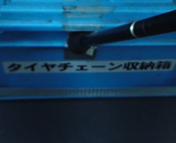 バスの座席の下にタイヤチェーンを収納している。非常時用だろう。 |
