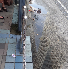 雨上がりのバス停 歩道側に水溜りができているが、バスが寄って止まると水しぶきが足にかかる。鏡のように建物が写っているが泥水に近い。 前の人にかかったが、腹を立てても仕方ないので我慢しているに違いない。次回気を付ければよいが中々そこまで気が回らないで被害にあう。 運転手も気付いていないのか、利用客が気をつけなさいと思っているのか。知る限り中央のバス停だけのように思う。 TVに映る瞬発的な東京の集中豪雨を観ると些末な問題で書く方が可笑しいと言われそうだ。 |
