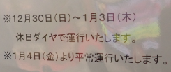 年の暮れ 2018(平成30)年 平成30年も後3日、今年一番お世話になった生涯学習センターの6Fすかやかん(最上階)と5Fのまなびかんの夜5時だ。まだプールや図書室は最後のお客さんがきているのだろう。この5年間で1,000日位来ているかもしれない。それ以外に特定検診・ゲートキーパーなどでお世話になっている。 バスも明日から正月運行だ。 ![]() |
