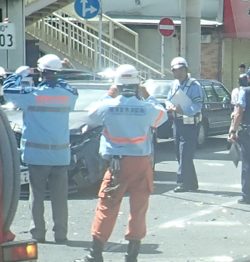 朝の交通渋滞 最近16号線で事故が多い。お盆の季節はあまり関係ない横須賀だが、16号線が渋滞するのは、 土日に中央でイベントがあるときか、交通事故で1車線になるときである。乗車するまでは普通だったが途中から動かなくなり、 救急車のサイレンがけたたましく鳴り物々しさが伝わりだした頃に現場(田ノ浦の交差点)を通り過ぎた。4台の車が衝撃の激しさを物語るように接触していた。 当然ニュースになっていると思ったが、帰宅してネットニュースの地方版に掲載されていなかった。負傷者が軽傷だったのだろう。 前がつぶれた車の運転席に人がいたが大事無くて良かった。 |