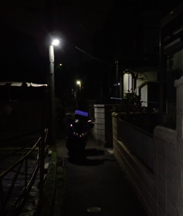 暗い夜道 近道の路地裏。バイクが止まっている。野良猫のフンが時々ある。近道で利用するが初めての人には恐い場所だ。女性がむこうから、「こんばんわ」と声を掛けてくる。子供連れの人に多い。私も「こんばんは」と返す。 互いに安心する。無言で通り過ぎる女性はこちらも声を掛けずらいし対応が困る。半世紀前には無言などあり得ない時代だった。もう充分昔語りの爺になっている。戻って18年変わらない路地裏なのに住む人の気持ち変化したのだろうか。 |