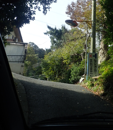 下向きのカーブミラー2018年11月18日 国道や信号のある道路では見かけないが、横須賀は市道・私道の山道も多い。カーブミラーは車が曲がるときに対向車を確認するためにあるのだ。(運転しないので聞きかじりだが)葉山の木古庭の山道を走っていると突如道路の先が切れて見えない。一方通行ではないので対向車を確認できないということで、写真右上に下向きのミラーが取り付けられている。知人も歩いているときには気付かなかったが車で通り始めて見たそうだ。他にあるか知らないがあまり見かけないようだ。これも横須賀(葉山)の地形ゆえかもしれない。直進すると急坂を下りることになる。 |