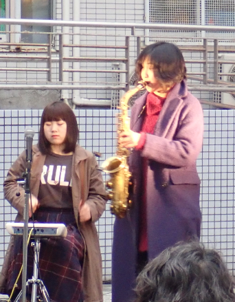 Xmas2018の景色 横須賀中央の居酒屋はXmasイブは休みが多い。客が来ないからだ。Oは3年前に開けたが、ダメだったので戻して休みらしい。従業員やバイトも嬉しいだろう。その駅前で、前田サラFamilyBandのライブをやっていた。Saxプレイヤーとして単独ライブもやるが、クリスチャンでもあり、オルガンとの共演や最近目覚ましい活躍をしている。魂を揺さぶるライブだ。夜は燭火礼拝をほとんどの教会でお祝いする。 |