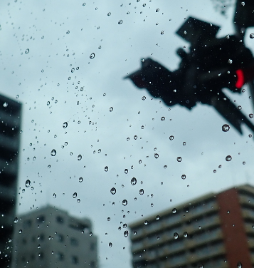 終日雨が降り続く、時には仕方ない。写真に収めるのが難しく、今までは掲載していなかったが、偶然バスの窓ガラスの水滴にピントが合ったのでシャッターを切ったらなんとなく雨っぽく見えるのでいいかな。右上の信号の赤が少しポイントになっているし、どんよりした感じもそれなりに表現できていると思い載せてみた。自分のはどうしても、掲載が先にあるので甘くなるのは勘弁してほしい。祭り以来の雨かもしれない。 |