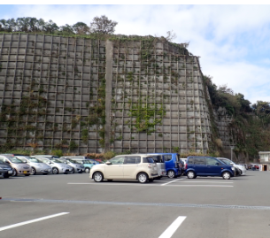 横須賀共済病院駐車場の急傾斜地の擁壁である。中央のメイン通り米が浜通りの裏手にある。今まで通った事がない。こんな広い駐車場が出来ていた。病院を改築拡張するにあたり駐車場は不可欠である。北部共済と統合して集約された。三浦半島特に横須賀は谷戸地形であるが故に平坦地が少ない。山は高くて200m位だが、切り通しで階段状に家がたつ。あるいは削り取って平地を造成する。金はかかる。代わりに港は自然の良好に恵まれている。だから海軍基地が昔からある。痛し痒しだ。 |