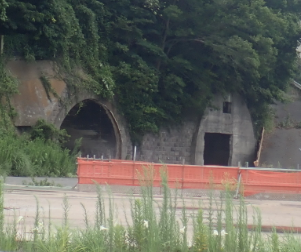 田浦と船越の境界の海側の丘に掘られた防空壕で田浦側から撮った。船越に通じているトンネルなのか単なる壕なのか定かではない。旧関東自動車工業の建屋が最後まで残っていた。それを取り壊したら出現した。子供の頃はこの辺りのことは全く知らない。16号線の海側で、もう建屋があったと記憶している。今は海事の管理地で目的もなく入れないし、探検する気もない。戦前の遺産。 |