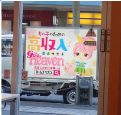 「girls Heaven」の宣伝カーがカフェの前に止まっていた。以前、高齢者(男性)歓迎の看板をを紹介した。淑女の話し相手を出来るおとなしい方を求めていた。高級だが妖しい匂いがプンプンする。この宣伝カーでどの程度募集人員が確保出来るのだろうか。キャッチ専門の女性かもしれない。少なくとも少女がアルバイトできる仕事なのだろう。中央の周辺もキャッチは多い。メイド服姿の可愛らしい少女がビラを配るが、私は渡されたことがない。 |