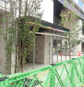 内装の最終段階でいよいよというときに、植栽する。最近のビルといわず民家でもそうだ。あぁ、歓声が近づいたなと思わせる。道行く人にも合図になる。上階は住居だが、下にはどんな洒落た店がくるのか。有名ブランドでもテナントになってくれるかと心待ちにする。期待が楽しみに変わる。私は食事処だと入りたくなるので造りを見ながら判断している。 |
