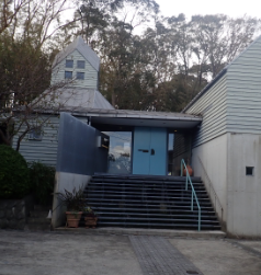 開館以来、歩道脇に設置され正面に美術館のフリースペースが見え、その裏が県立観音崎公園になっている。通る人は少なく左下の彫刻碑を確認する人がほとんどいないくらいに溶け込んでいる。元々は多少外見が異なる二つのVALLEYを本人と美術館が一つにして展示した。最初の個展はJR田浦駅前の画廊で、30年経った。そのときのインパクトに圧倒された。 |