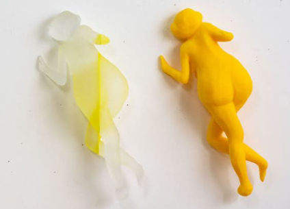 右の作品はヨーゼフボイスのドローイングからイメージして立体にしている。はじめて裸婦を観た。《ファミリー》はサイダーで、これはジントニックかラムだろう。サイズを大きくした作品を観たい。本題の《カプリバッテリー》は写真がない。ネット引用は原則しないので残念。興味あれば、ヨーゼフボイスで検索を。本物のレモンを使っている。袴田作品も本物を使っているから展示中は交換しないといけない。 |