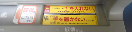 JRでなく、本局のある京急にしたらもう少し対応が早かったかもしれないと反省。原因は札が一枚折れていたことだという。だったら、紙幣投入口を開け入れ直せといいたい。 |