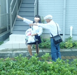 JR横須賀駅から最寄りの京急駅は汐入駅である。多分この男性はその中間点くらいで迷っている。JRではまっすぐ行けば10分で行けます程度に聞いたと思うが、初めての人は戸惑う道だ。親切なJK(中学性?)が多分詳細に教えている場面ではないかと想像している。笑顔が素敵なのでそのまま掲載したいが、雰囲気を感じてもらえたら嬉しい。最近の横須賀JKは親切だし常識を身に着けている気がする。 |