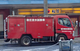上記の文言の車をみた。カフェの前に止めていた。色も赤だし、119と関係があるのかな?と思ったが初めてでカメラに収めた。東京に本社のある民間会社だ。「建物竣工時の消防検査における連結送水管の耐圧・放水試験や10m年経過した建物の同様の試験を行っている。」とある。業界№1だそうだ。 |