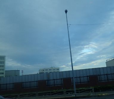 お彼岸が過ぎても、なお暑い。夕暮れの空は早秋の気配が十分感じられる。台風の影響もあるだろうが、確実に秋に向かっている。今はエアコンもいらないしのぎやすい季節だが昼は残暑にちがいない。空は北東にあたる。この先が東京湾で埋め立て地だ。 |