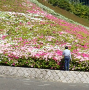 つつじ狩り2020年4月22日 湘南国際村・科安の里付近 湘南国際村の周辺を囲っている生垣のつつじが満開で時折訪れる人の目を楽しませている。その人をパチリ。元々人通りは少ない。佐島から葉山・逗子・汐入へ抜ける道で車も少ないが、目の保養になる。わざわざゆっくり走る車はない。桜とは違う。でも赤・白・ピンクが融け合い緑と織りなすハーモニーは桜にない艶やかさがある。現代の楽しみ方の一つではないか。地味なんて言わせない熱量を感じる。 |