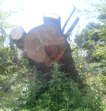 台風の爪痕の確認2020年4月23日 昨年の台風で倒れたヒマラヤ杉の巨木が3本伐採された残骸である。倒れて通行止めになっていたが程なく開通した。昔の国道16号線脇にあった3本で遊びに行っていた子供時代の象徴のような3本のヒマラヤ杉だった。すっかり切り倒されていた。半年で草木が生い茂りやがて土に還るのだろう。 |