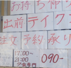 | 近所の居酒屋2020年4月23日 コロナ騒ぎで夜は居酒屋を休業している。持ち帰りと出前・弁当に看板を変えて凌いでいる。個人の居酒屋が生き残るためには休んでいられない。自分の家・土地なら多少は良いが、借地・借家では保たなくて潰れる。 |