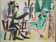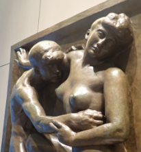 アーティゾン美術館の正面入り口 2020年1月29日 会館10日。予約制でフラッと入れない。スマホがあれば結構簡単だし、展覧会のガイドがスマホに取り込め無料で聴ける。そしてほとんど(本展に関しては全て)が写真OKなのだ。日本の美術館では画期的な対応で嬉しい。下記に10数点好きな・気になった作品の写真を掲載したが、あくまで素人写真で絵はがきには及ばない。最初に出迎えてくれたのが、マネの自画像。カンディンスキー《自らが輝く》、ピカソ《腕を組んですわるサルタンバンク》、とマティス《縞ジャケット》が並び、ロダン《《立てるフォーネス》、シスレー《サンマメス六月の朝》など好きな作品が綺羅星のごとくある。ピカソと岡鹿之助が向き合い、百武兼行の裸婦が堂々と掛かっている。神話世界が西洋の世界観の中で並列に展示され、 70年前に予言された遙か数十億年先の世界観迄を飲込んでいる作家を評価する姿勢に賛辞を送りたい。エントランスにはマイヨール《欲望》が掛けられていた。 |