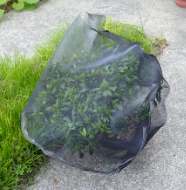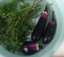 周囲にクローバ植える。来年が楽しみ。いや秋口にも 今日の収穫(茄3本、セリ2食分) |