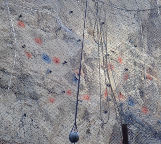 三笠通りの崩落事故のその後 2020年2月10日 現場には数十箇所に地中アンカーを打込んであった。それ以外に赤と青のマークで印をつけてあり、追加で打つのか定かじゃ無いが何らかの目安なのだろう。闇雲に対処せず二重災害を防ぐ意味でも調査は欠かせない。専門家の意見と緻密な科学的調査の上で対策をとる。予算の保証があっての話で今年度の市の予算を待たないといけない。これ以上の大事故はなさそうだと判断したこと、隣接店舗は休業し人的被害の心配がないので急がないのだろう。何より裏手で人目に付かない。 |