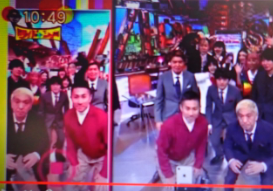 画面が反転(古い動画が今日再生オンエアされていた)20200412 右がTV画面、左はそれをスマホのTikTok動画。左右が反対なのがおわかりだろう。実は湘南国際村に行くとき、バス路線ではなく近道で途中合流地点のT字路の反射鏡で左右の車を見ながら侵入するのだが、左側通行のはずが反射鏡に映る車は右側通行になっている。一瞬えっ!?と思うのだが、慣れると左右から来ているので気にならなくなるらしい。が何かおかしい。これもそうだ。誰も突っ込まない。 |