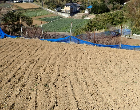 三浦半島の丘陵地帯に拡がる農地 2月11日 黒字というほどの規模ではないが、農業をやっている人が結構いるという。収穫した野菜は路地裏で無人無店舗販売している。ご近所の方が買うという。ここもその一つで多分ジャガイモを植付けるようだ。同じ時期に始めるので近所だし真似をしていきたい。機械で耕している。15㎡では無論手作業になる。運動には丁度良いと思うがはじまないと判らない。 |