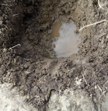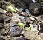 セリの根だけ植えたのが芽吹いてきた。 下右は、30cmくらい掘ると水が湧き出るように出てくる。左の岩は結構キツかった。ようやく堀出した。それ以外は上辺を耕作した。私も久しぶりで無理せずに90分で汗かく前に引き上げた。 |