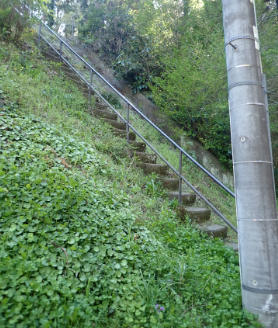 下の水道道路の左側に急階段があり、そこに水道局の管理する施設がある。その付近は開発公社などが所有する土地なのだが、近所の人たちが畑にして遊んでいる。20年前に戻った頃に、誘われたが止めた。この階段を上り下りするのが怖かったからだ。この登った左記に更に階段がある。しかも収穫野菜や荷物を上げ下げもする。休憩小屋で呑み会をしている。事故が起きなかったのが不思議だ。この間から子安の里でレンタル農園をはじめ、ジャガイモなど植えた。 | |