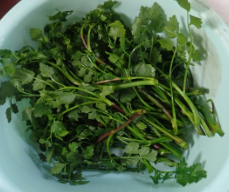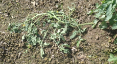 | 自然のセリ5月12日 畑に植えたセリが全開にも増して収穫できた。4箇所くらいの中で一箇所のみ根付いたし、水の問題も多少判断できた。右は真反対の場所でやはり水がないと涸れる。ジャガイモ・ネギとは違うし、水耕栽培の温室育ちなので簡単ではない。 |