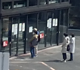 コースカベイサイド 一部オープン2020年4月24日 10時にリニューアルオープンだが、9時の段階で2組4人が並んでいた。2mの感覚を空けていた。想像以上に人が並んでいない。皆生活用品は充分現在の環境で賄っているのだろう。特典などないし、イオンなどほんの一部の店舗のみではそれほど気を引かなかったのかも知れない。私は畑の往路で経由したが、復路は逗子経由で混雑していない経路を選択したつもりではある。 |