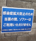 | ほぼ解放感に溢れている週末5月31日 コースカの支柱を囲むソファーに人が埋まっている。注意書きはあるが、貼紙など気にしていない人が多い。GUは入場制限して店の3密を防いでいるが外に列が出来ている。疲れもあるし久しぶりの外出に余韻があるのかも知れない。 |