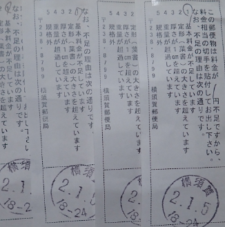 葉書の基本料金不足¥1円 昨年止めた年賀状だが20通位来た。返信の葉書を出したが少し古くて1円不足していた。近所なので速攻で通知状が貼られ返送の返送だ。1円位とも思いながら即1円切手を貼って投函し直した。初めての経験で、大きな局で良かった。出来れば年賀状ではないが、早い内に出したかった。正解はないと思うが儀礼的にはいつが良いのだろう。松の内か。7日か15日か。お年玉付きなら15日までだろう。そうでなくとも全国的にはどちらかの区分けになる。 |