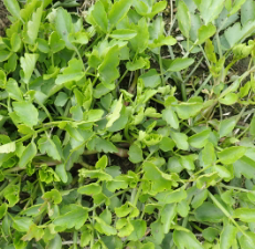 クレソンの群生に興味を示さない 2020年4月12日 バス停脇の側溝にクレソンが群生している。毎年この時期に発生する。東京湾に注ぐはずであるが、水がほとんど流れない側溝。暫くすると駆除するのだが一部が残り来年再び芽吹き繰り返している。かといって、食材にするにはなんとなく「どぶ川」でおよそ清流とは言い難い。生活排水が流されている訳ではないが、野菜とは思われないので誰も見向きもしない。これが、里山のセリ・ヨモギ・ミツバ・フキノトウなどは山菜採りと称して採る。今はタケノコ掘りに多くがいく。 |